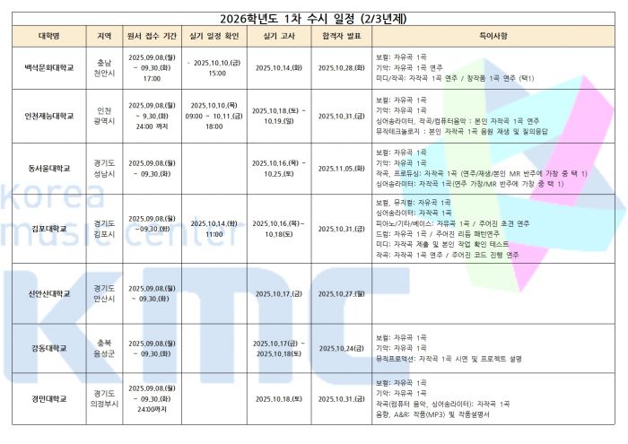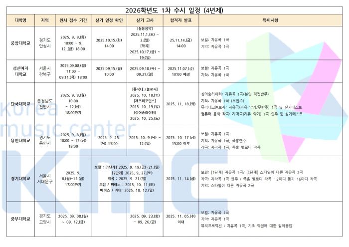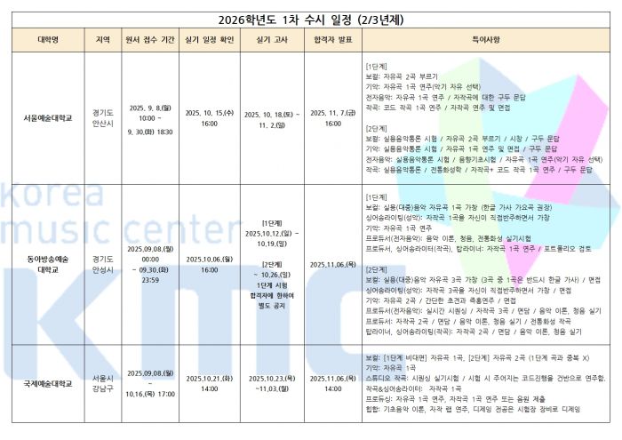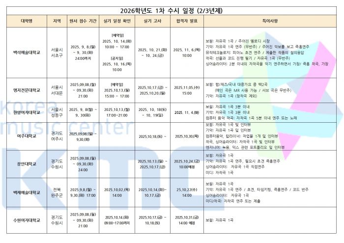 2026학년도 실용음악과 / K-POP과 수시 1차 입시요강