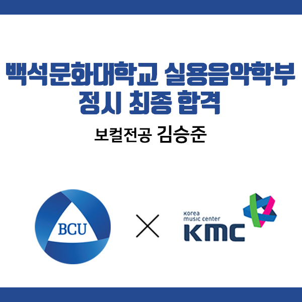 [2021 입시 합격자] 김승준_백석문화대학교 실용음악학부 보컬전공 정시 최종 합격을 축하합니다 !