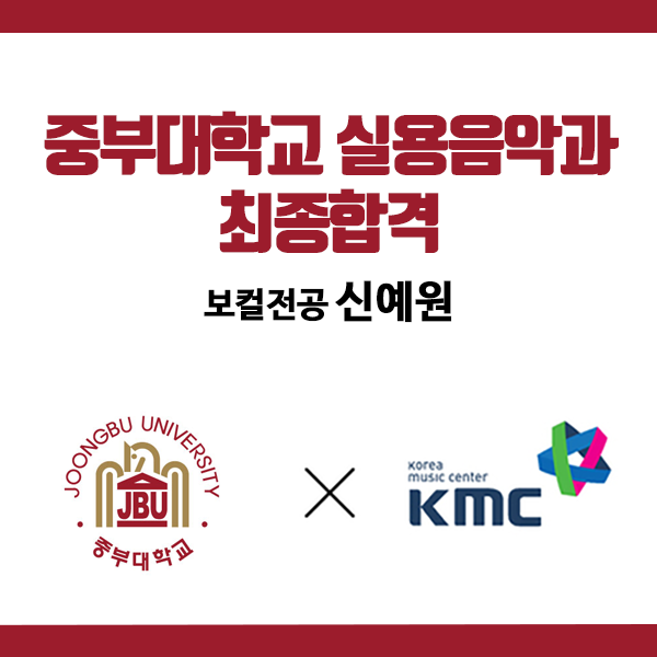 [2025 입시 합격자] 신예원 중부대학교 실용음악과 보컬전공 최종합격을 축하합니다 !